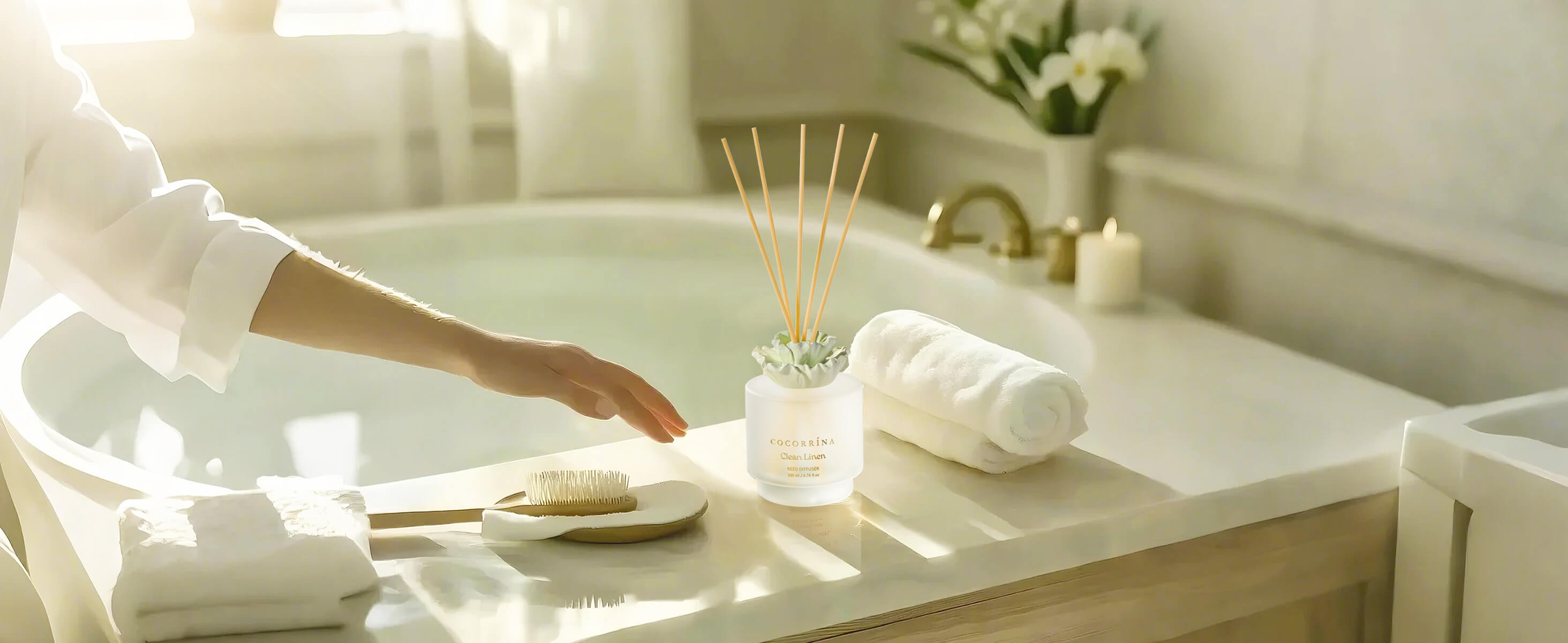COCORRÍNA Gypsum Flower Clean Linen Reed Diffuser